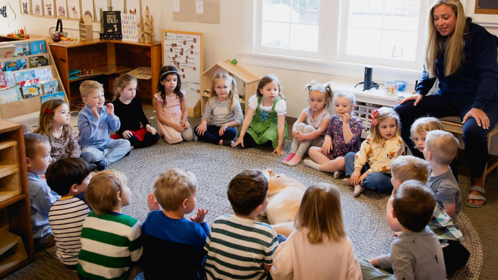 Ms. Jami's beautiful dog, Walter Disney, is a hit with children and parents. Participating in preschool enrichment since he was a wee pup, Walter is more than a mascot- he's the furriendliest teacher around.